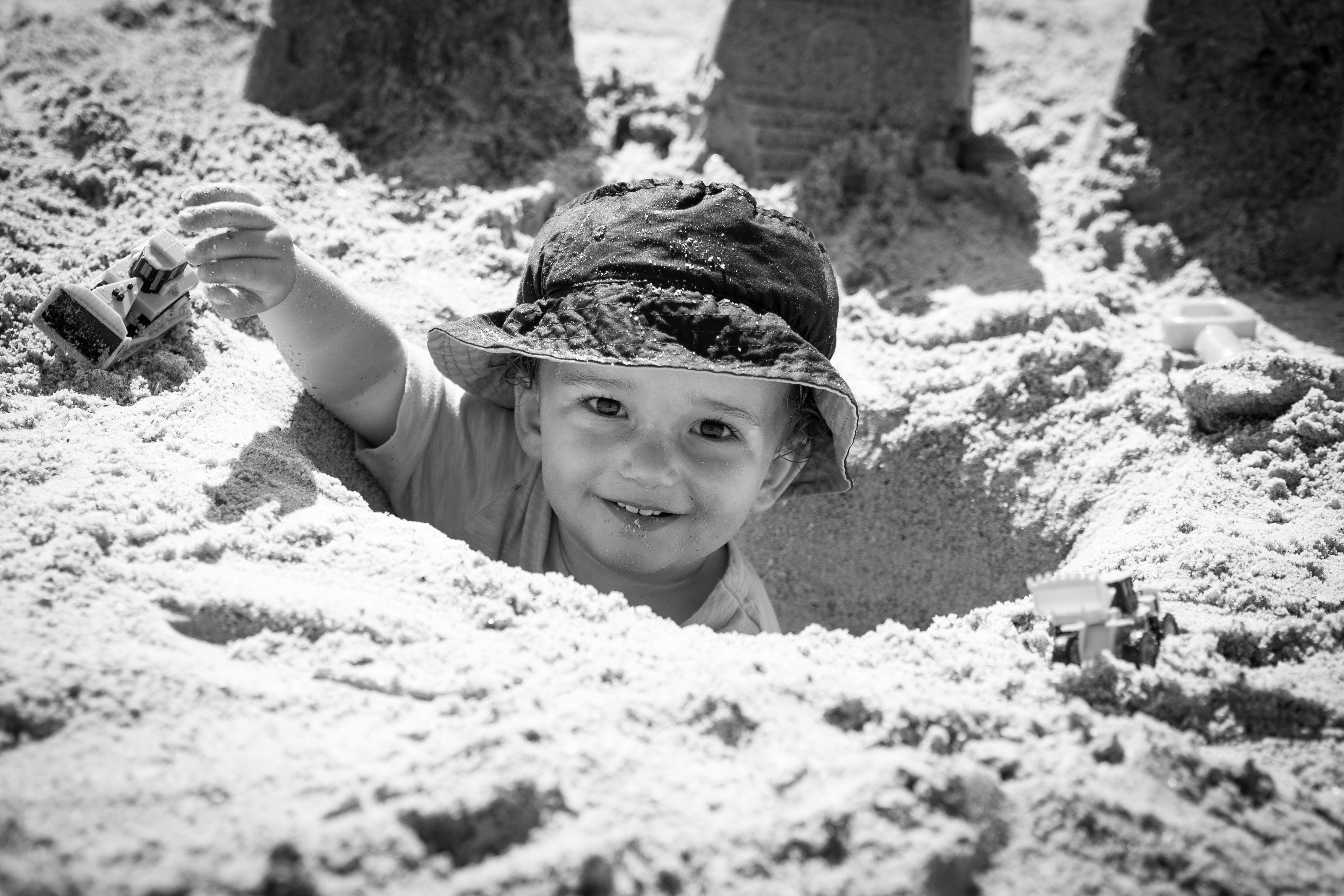Hiding in a hole at the beach