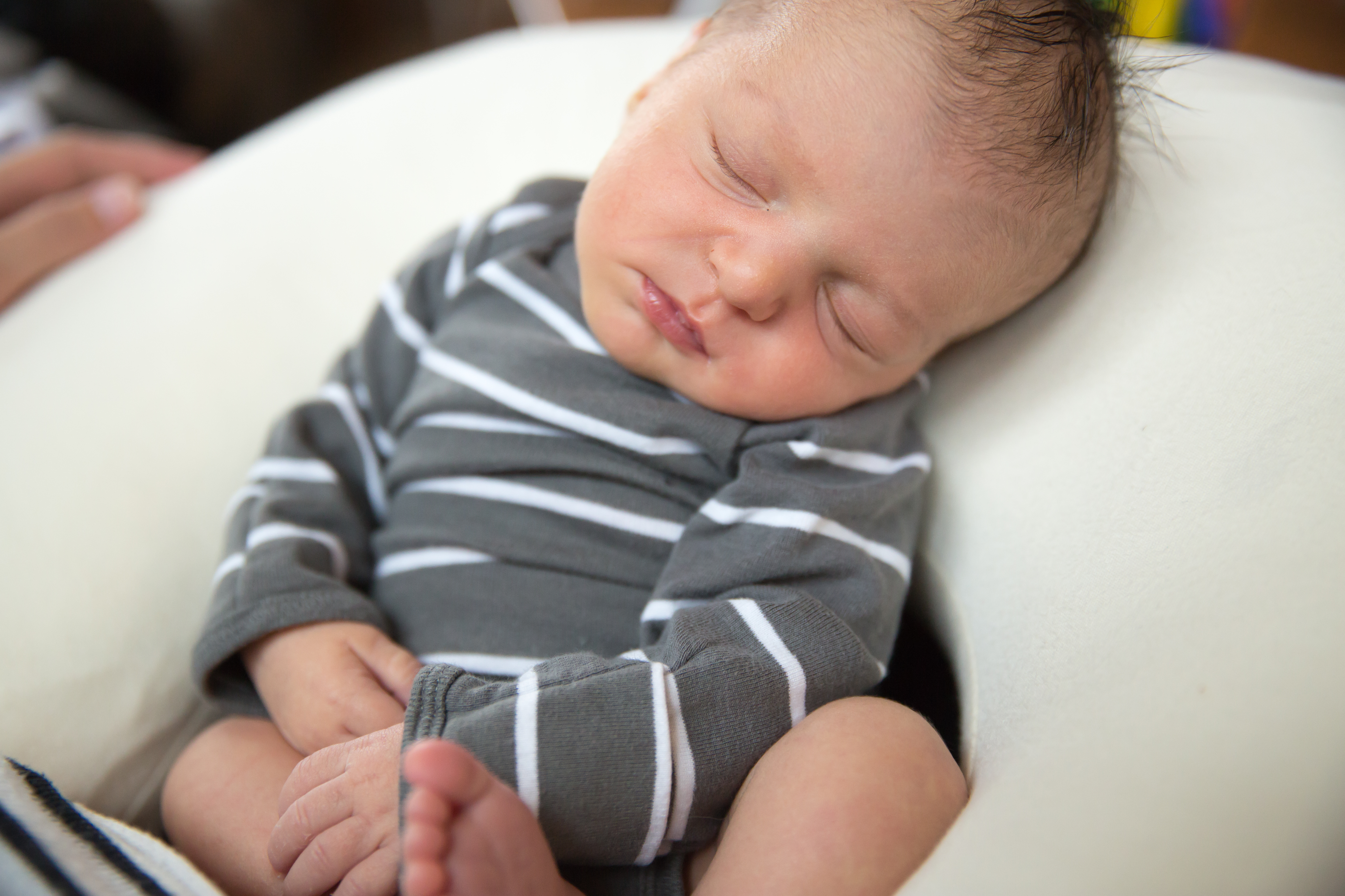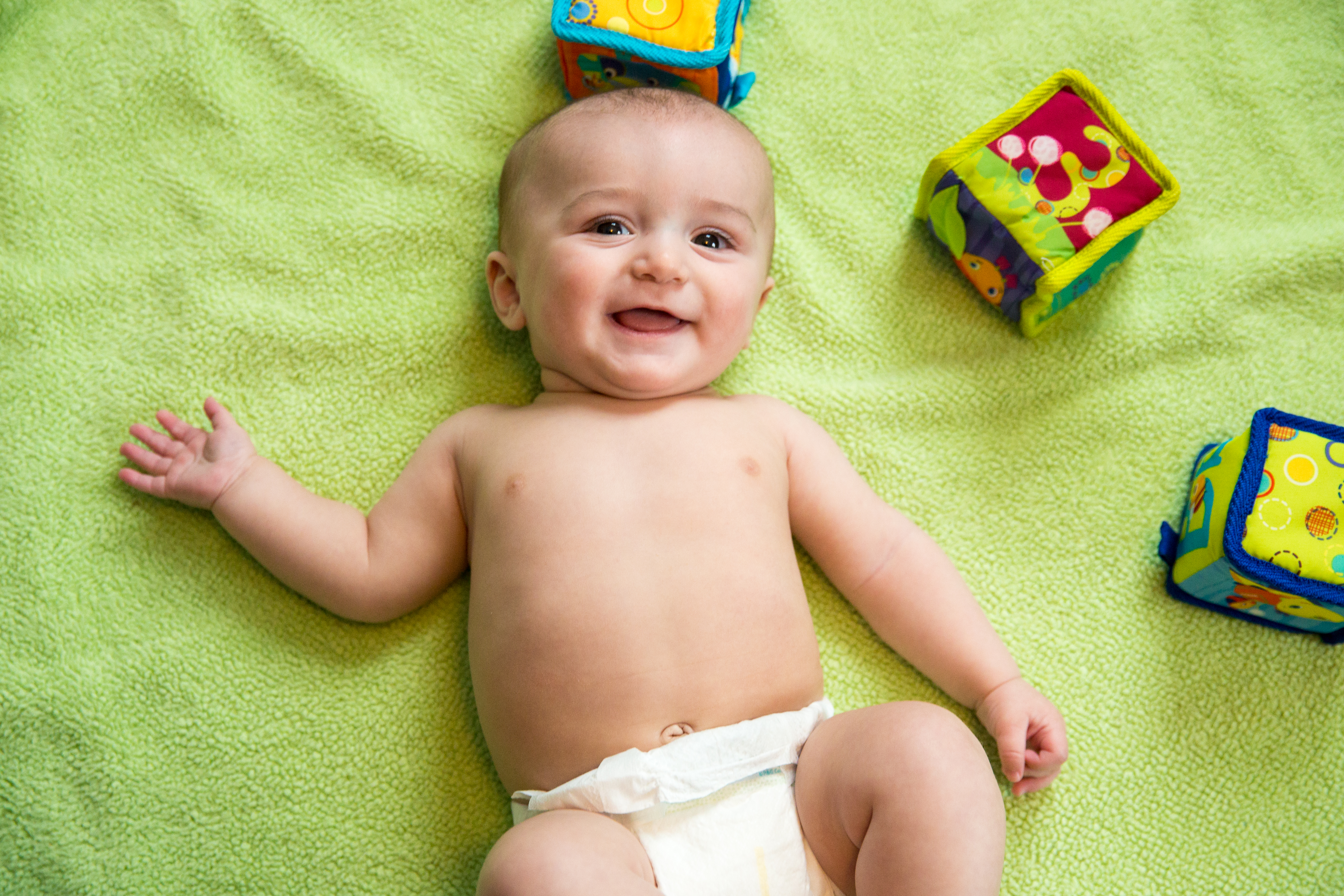 Caleb is growing fast and is starting to smile and giggle. He likes to have his belly tickled. He is especially smiley when watching his big brother, Cam.